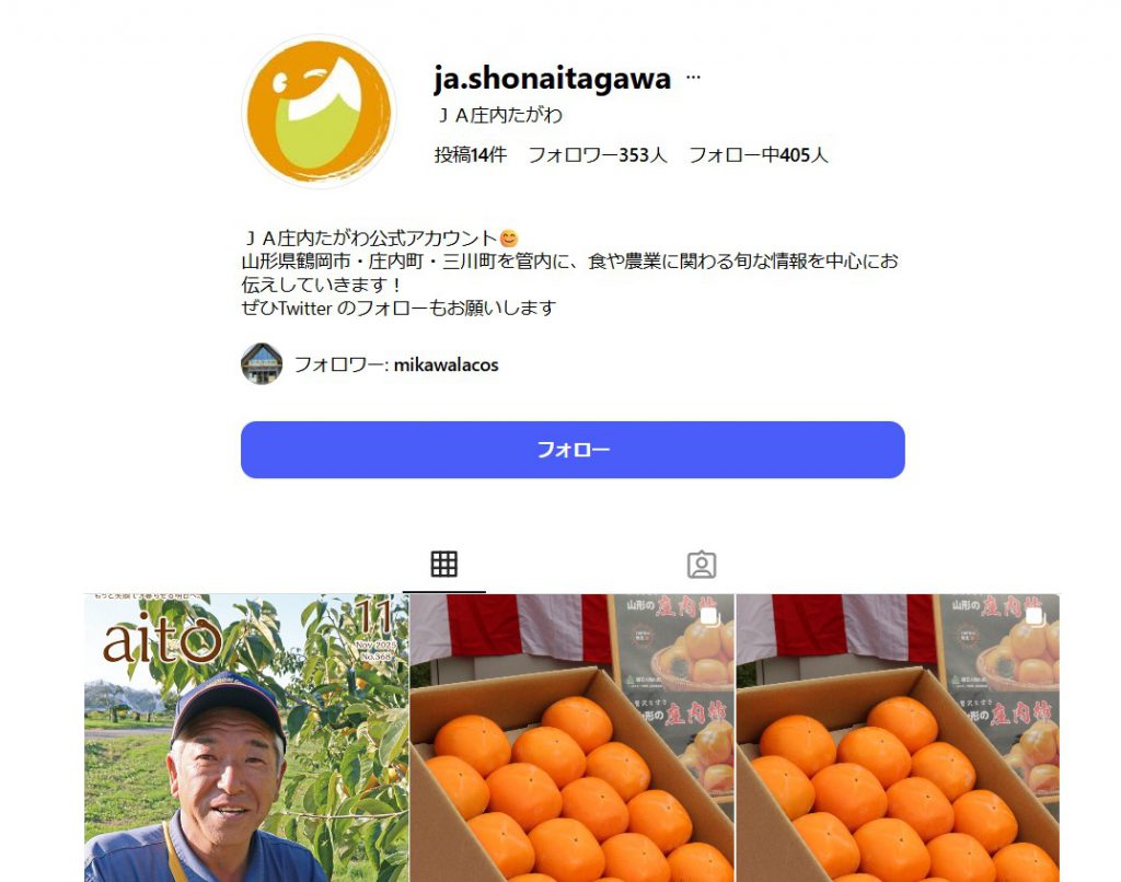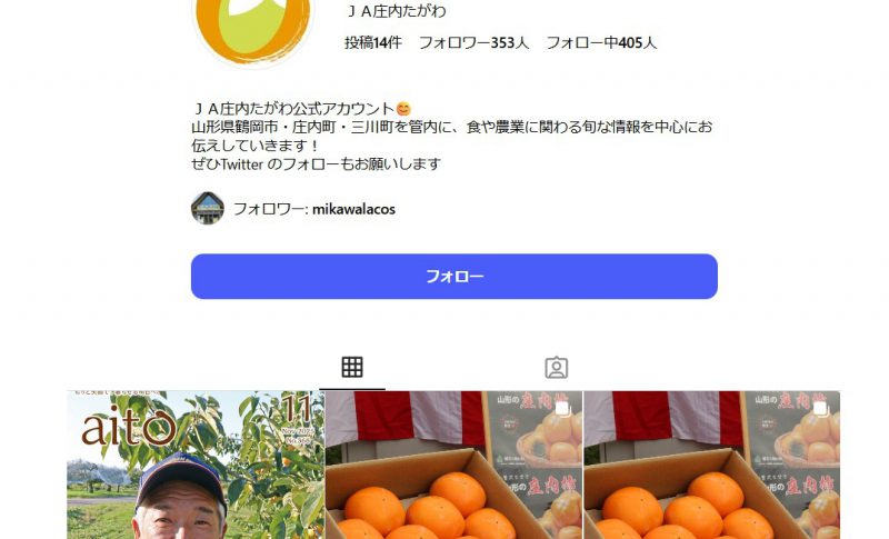 JA庄内たがわの公式アカウントを騙った偽アカウントが確認されています。